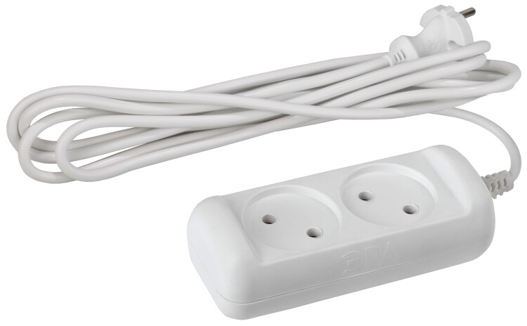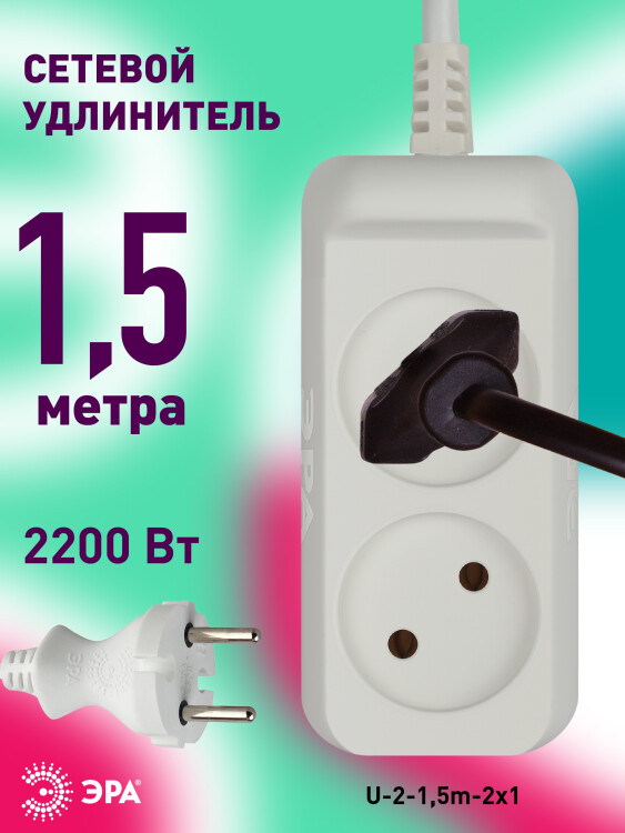Удлинитель электрический ЭРА U-2-1,5m-2x1 без заземления 2 розетки 1,5м ПВС 2x1мм2 10А