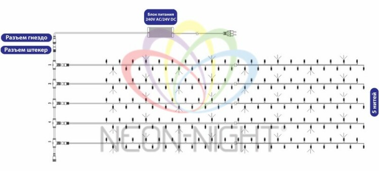 Гирлянда LED ClipLight 24V, 5 нитей по 20 метров, цвет диодов Желтый, Flashing (Белый)