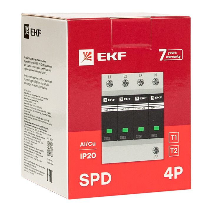 УЗИП Т1+Т2; Iimp-12,5kA; In-20kA; Uc-275В; 4+0 EKF PROxima