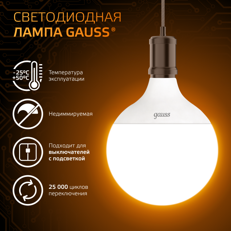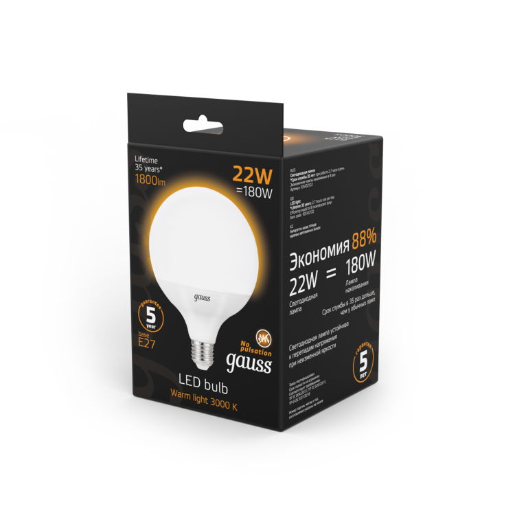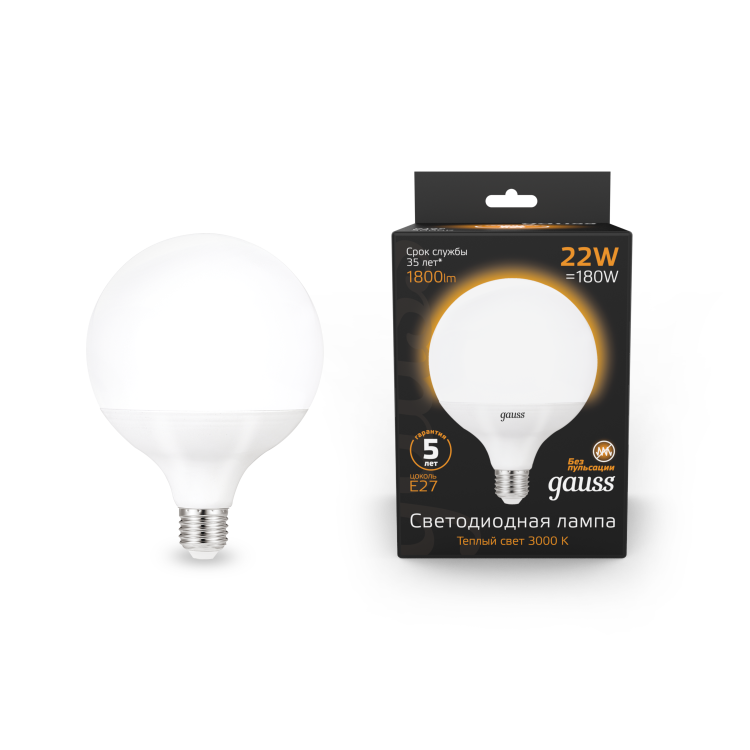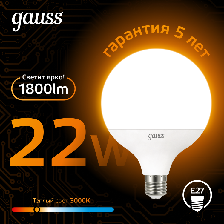 Лампа светодиодная 22 Вт 230В Е27 G125, 3000К тёплый