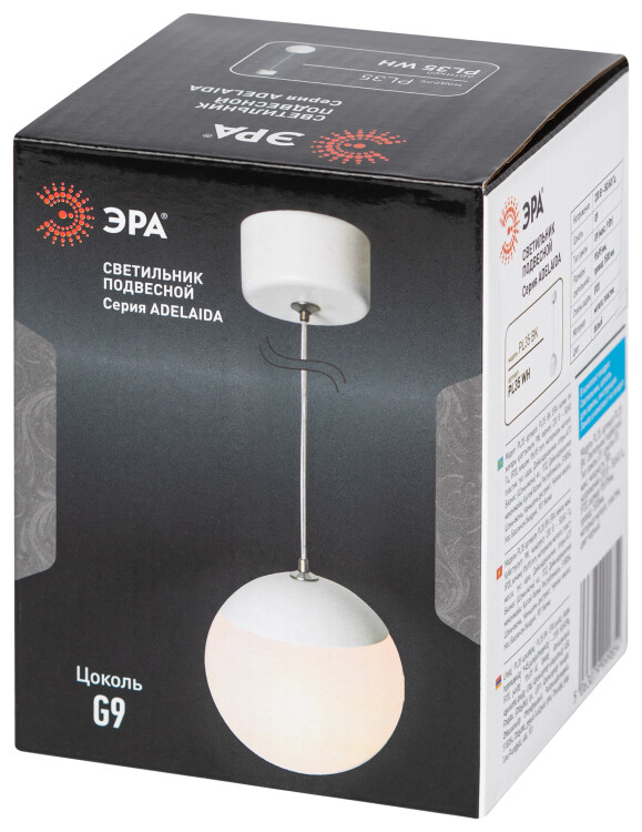 Светильник подвесной (подвес) ЭРА ADELAIDA PL35 WH G9 потолочный шар белый