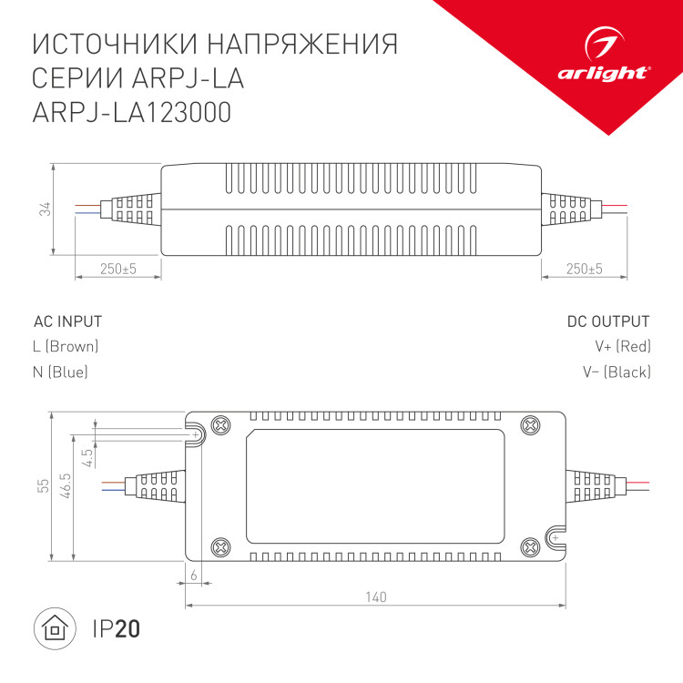 Блок питания ARPJ-LA123000 (36W, 3000mA) (Arlight, IP40 Пластик, 2 года)
