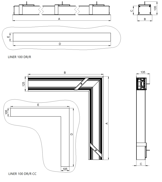 LINER 100 DR/R (610xL 90d) 32W 840 WH