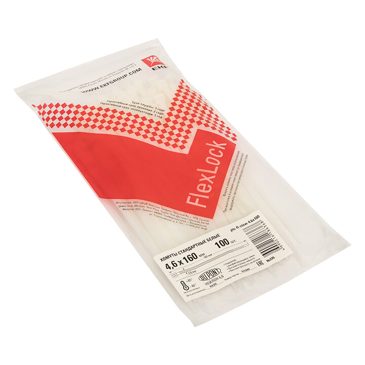 Хомут кабельный (стяжка) 160ммx4.6ммx1.15мм с внутр. зубчатым зацеплением пластик белый макс.d охвата36.6мм EKF