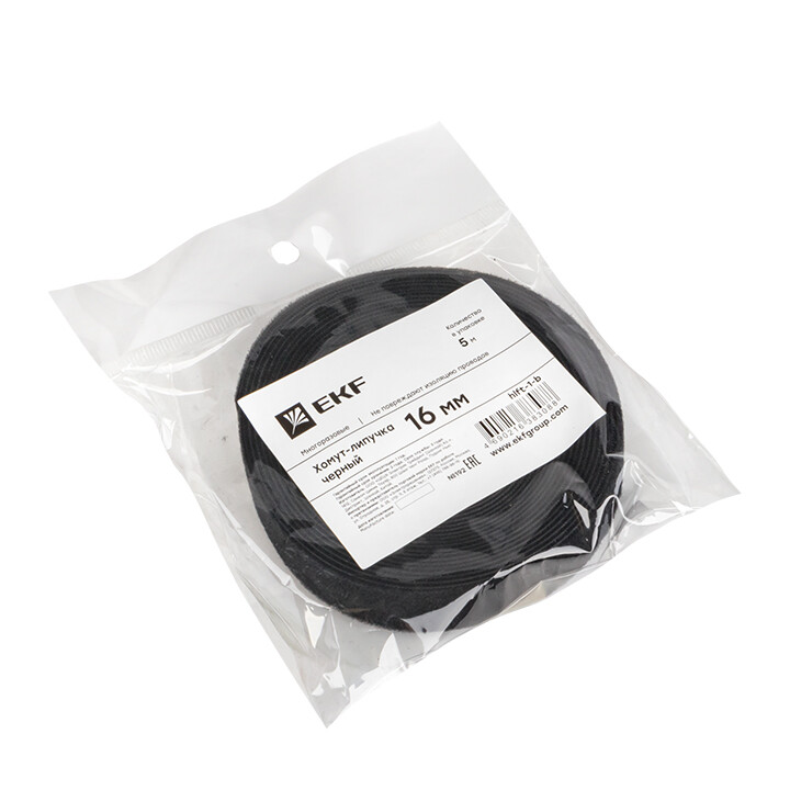 Хомут-липучка 16 мм (5м ролл) черный EKF PROxima