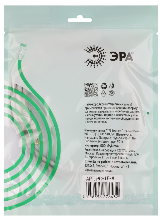 Патч корд ЭРА SIMPLE F/UTP экранированный 1 м, категория 5e, серый