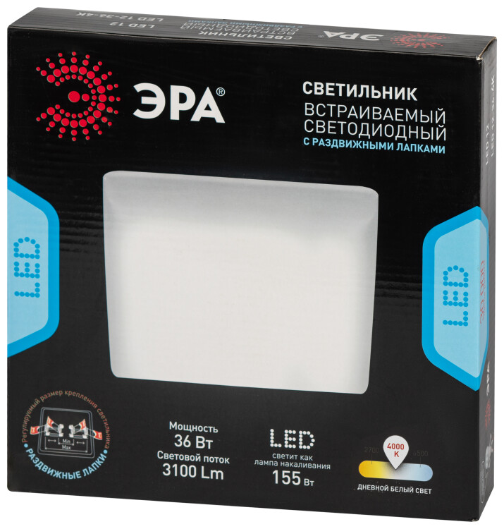 Светильник светодиодный встраиваемый ЭРА LED 12-36-4K квадратный регулируемый 36Вт 4000K