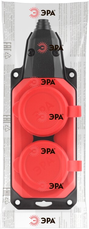 Колодка ЭРА K-2e-RED-IP44 каучуковая с заземлением 2 розетки 16A IP44 красная