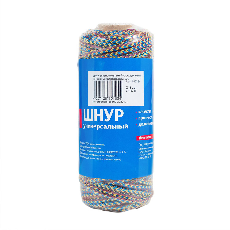 Шнур вязаный с сердечником 3мм универсальный меланж 50 метров