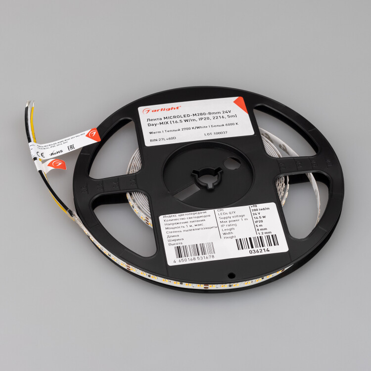 Лента MICROLED-M280-8mm 24V Day-MIX (16.5 W/m, IP20, 2216, 5m) (Изменяемая ЦТ)