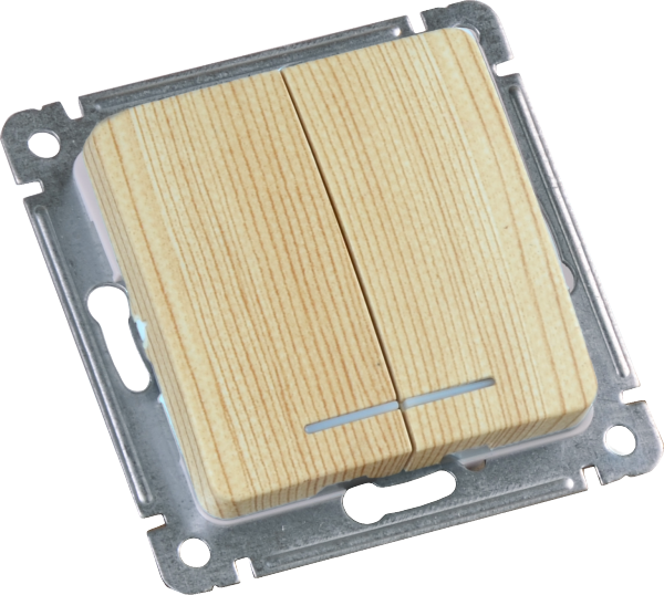 ВС10-452-02 Выключатель скрытой установки, двухклавишный, с индикацией, механизм, цвет сосна