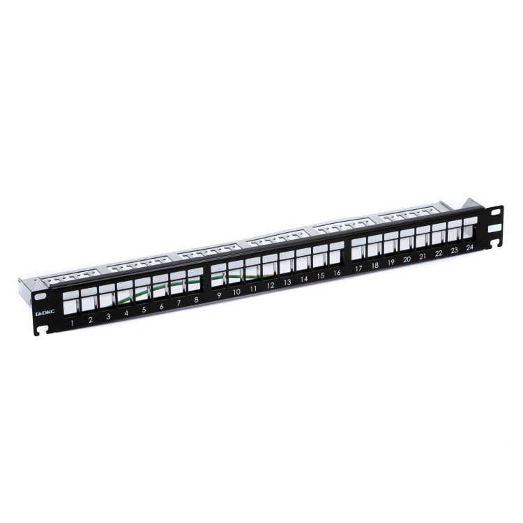 Наборная 19"1U коммутационная панель на 24 модуля Keystone UTP/FTP, прямая, черная (производство РФ)
