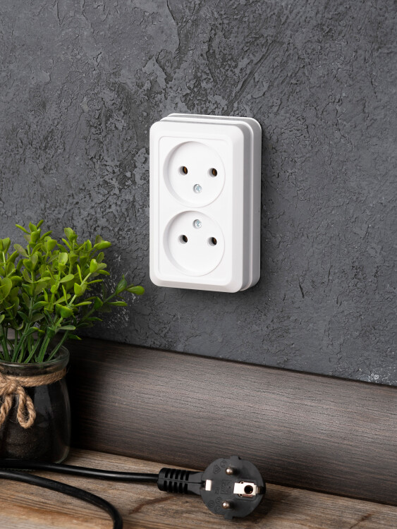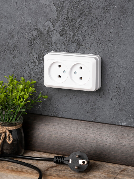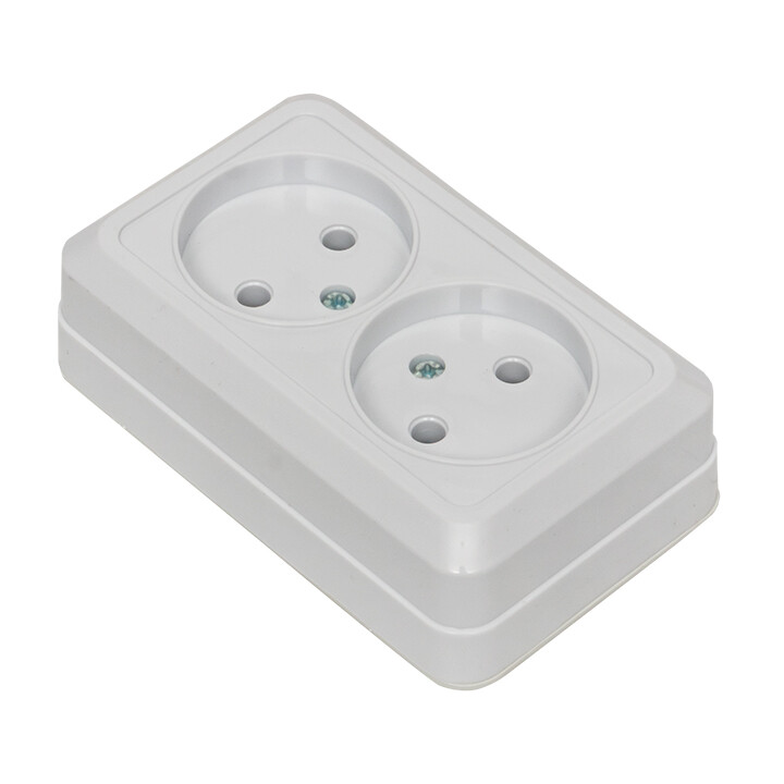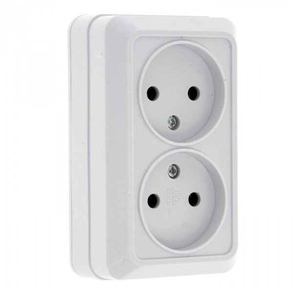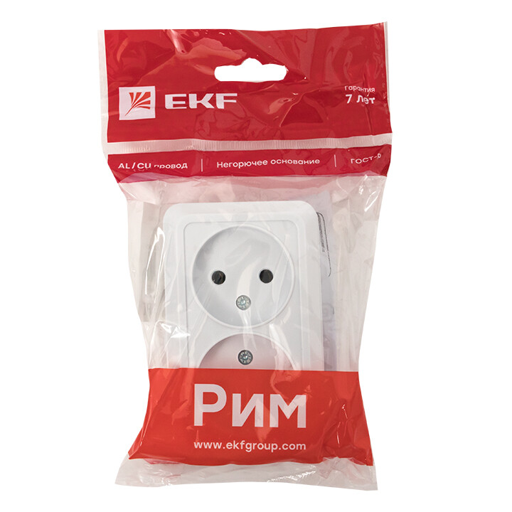 Рим Розетка 2-местная 10А без заземления белая EKF