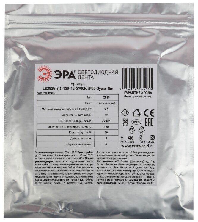 ЭРА Лента светодиодная LS2835-9,6-120-12-2700K-IP20-2year-5m (140/4200)