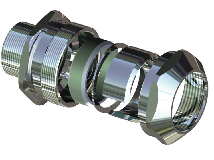 Муфта вводная труба ДУ40 - корпус М40х1,5мм с наружной резьбой, латунь. МТК-ЛС-М40-Т40 IP67