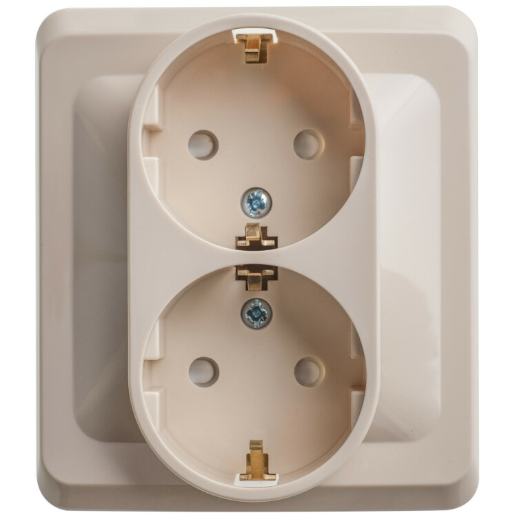 Розетка 2х2P+E со шторками кремовый Этюд