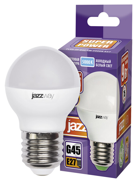 Лампа светодиодная 9 Вт 230В Е27 шарик, холодный белый