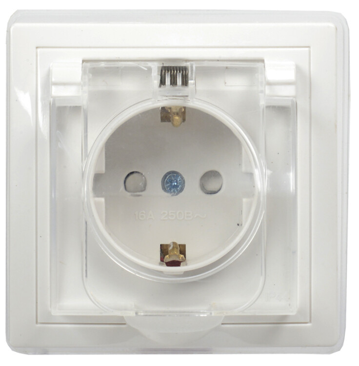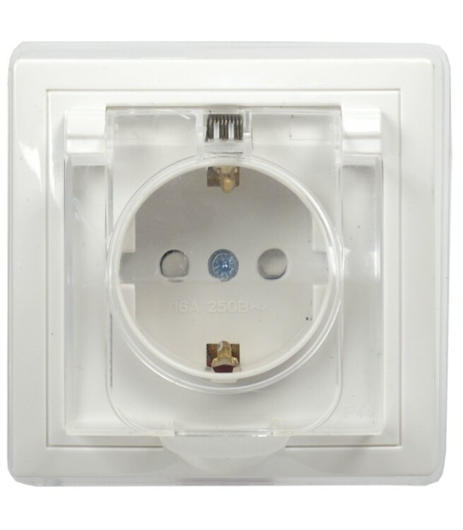 Розетка 2P+E с крышкой со шторками IP44 белый Кварта (РСбш10-3-ККБ-44)