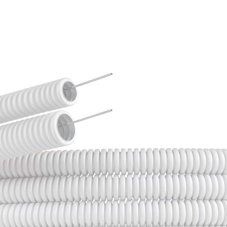 Труба ПЛЛ (композиция полиолефинов) гибкая гофрированная нг-HF д.32мм, ПВ-0, с протяжкой, цвет белый