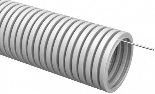 Труба ПВХ гибкая гофрированная д.20 мм, лёгкая, с протяжкой, цвет серый, (Бухта 10м)