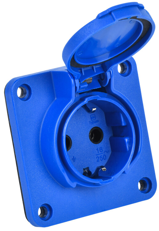 Розетка панельная прямая 16А, 2P+PE, 250V, IP54, РП17-3 с ув. фланц., MAGNUM