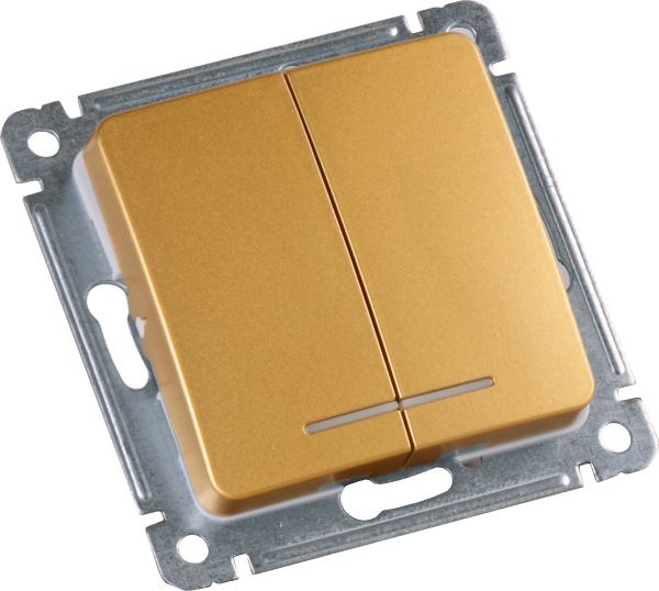 ВС10-452-07 Выключатель скрытой установки, двухклавишный, с индикацией, механизм, цвет золото