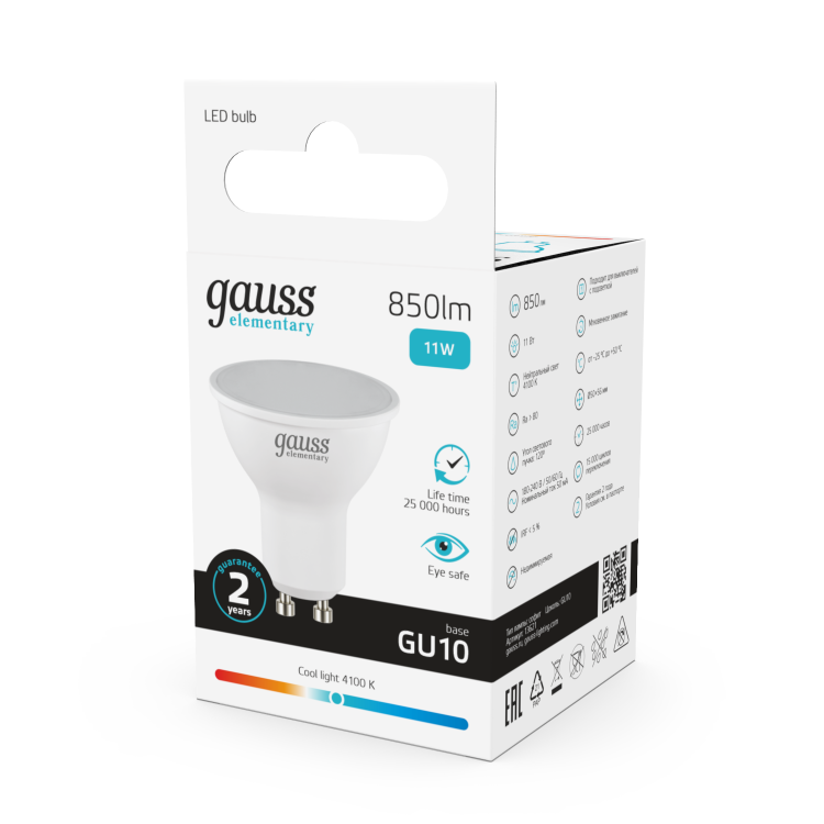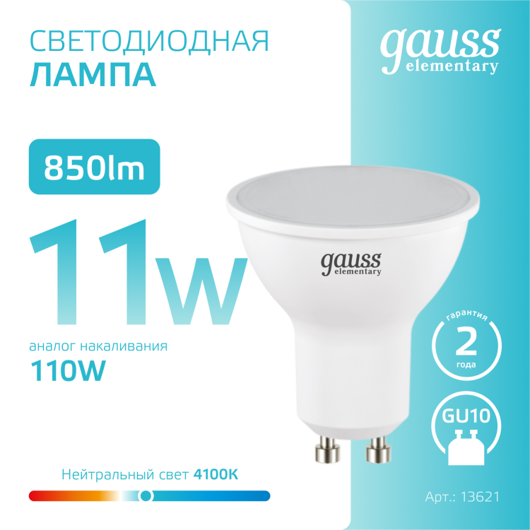 Лампа светодиодная Elementary 11 Вт 230В GU10 d=51mm, 4100К белый
