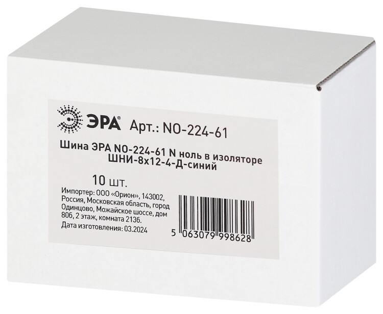 Шина ЭРА NO-224-61 N ноль в изоляторе ШНИ-8х12-4-Д-синий
