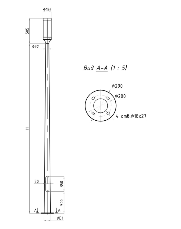 COLOSS TOP LED 30W RW 830 RAL9005 POLE 4M SET (в комплекте ЗДФ)