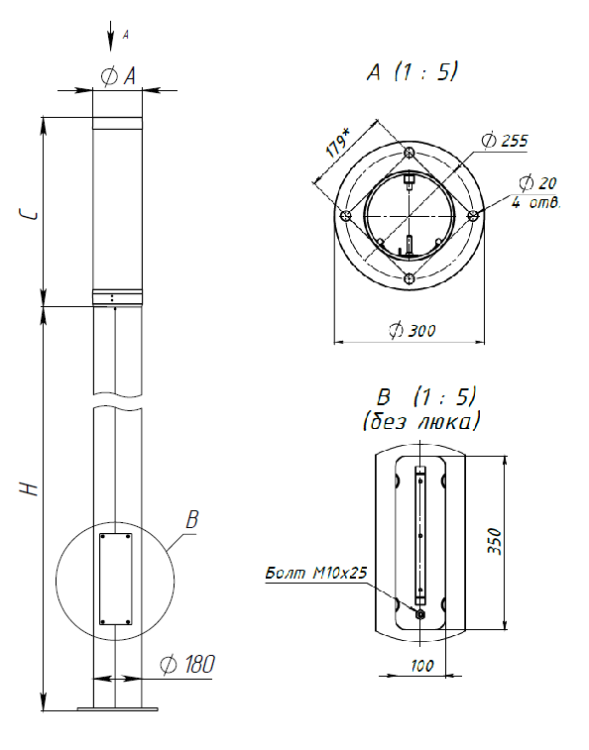 COLOSS LED 50W RW 830 RAL9005 POLE 4M (без ЗДФ)