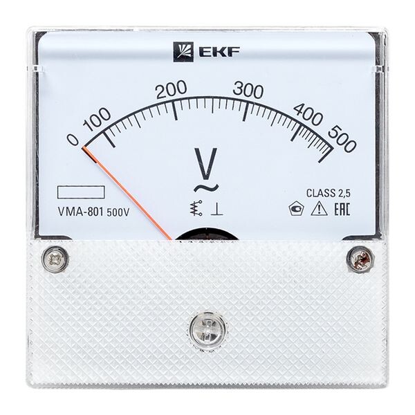 Вольтметр аналоговый на панель 80х80мм круглый вырез 500В прямое подключение, VMA-801 EKF PROxima