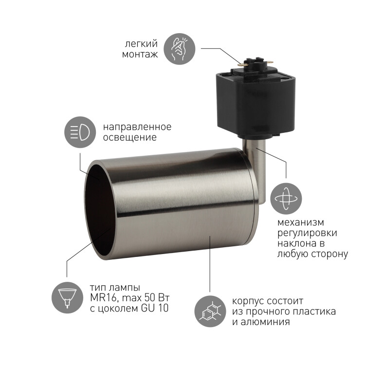 Трековый светильник однофазный ЭРА TR14-GU10 SN под лампу MR16 сатин-никель