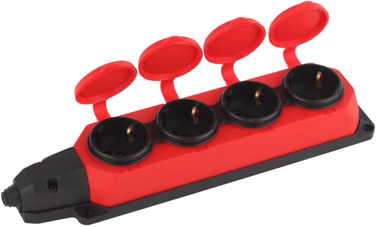 Колодка ЭРА K-4e-RED-IP44 каучуковая с заземлением 4 розетки 16A IP44 красная