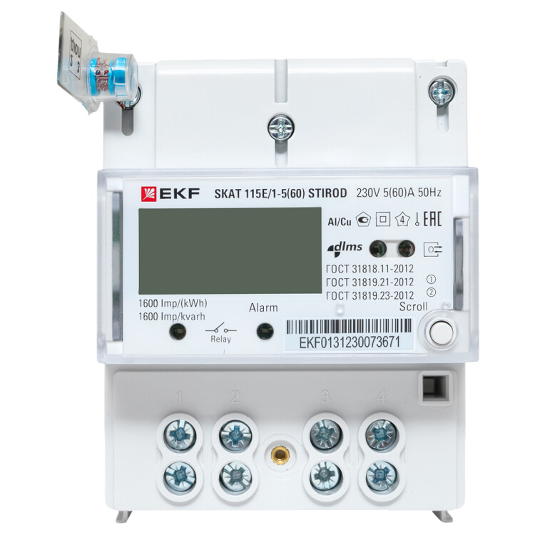 Счетчик электрической энергии однофазный многотарифный SKAT 115E/1-5(60) STIROD (встроенное реле) EKF 2т МСК+0