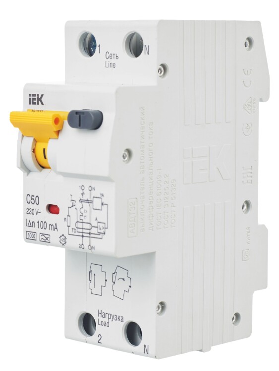 Автомат. выкл. дифф. тока 1-пол.+N 50А 100мА тип A 6кА хар-ка C серия АВДТ32