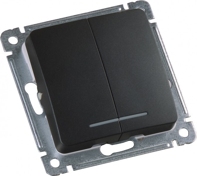 ВС10-452-08 Выключатель скрытой установки, двухклавишный, с индикацией, механизм, цвет черный