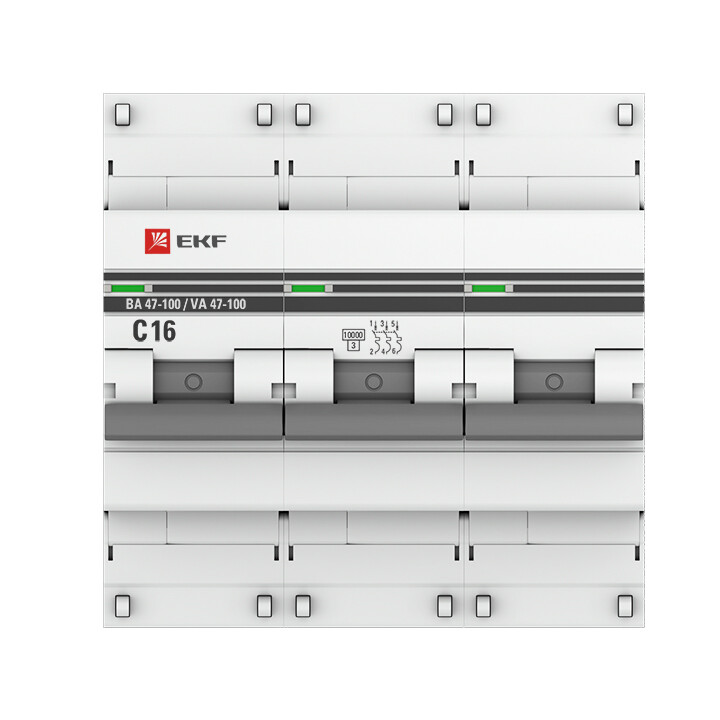 Автомат. выкл. 3-пол. 16А тип C 10кА серия ВА 47-100 EKF PROxima
