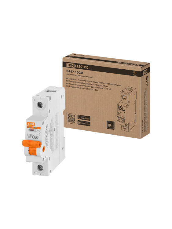 Авт. выкл. ВА47-100М 1Р 80А 10кА х-ка C TDM