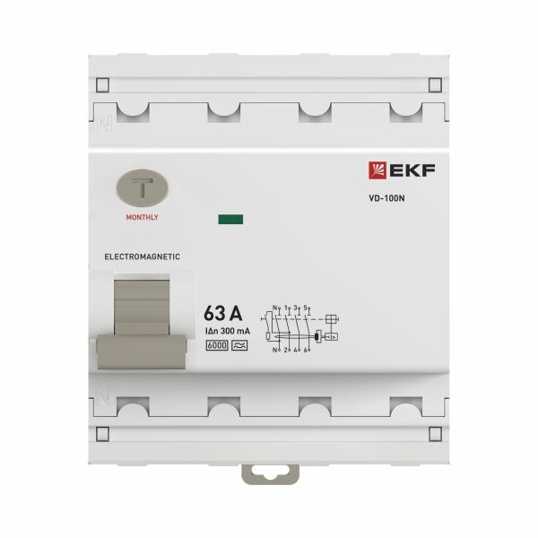 Выключатель дифференциального тока ВД-100N 4P 63А 300мА A эл-мех 6кА PROXIMA EKF
