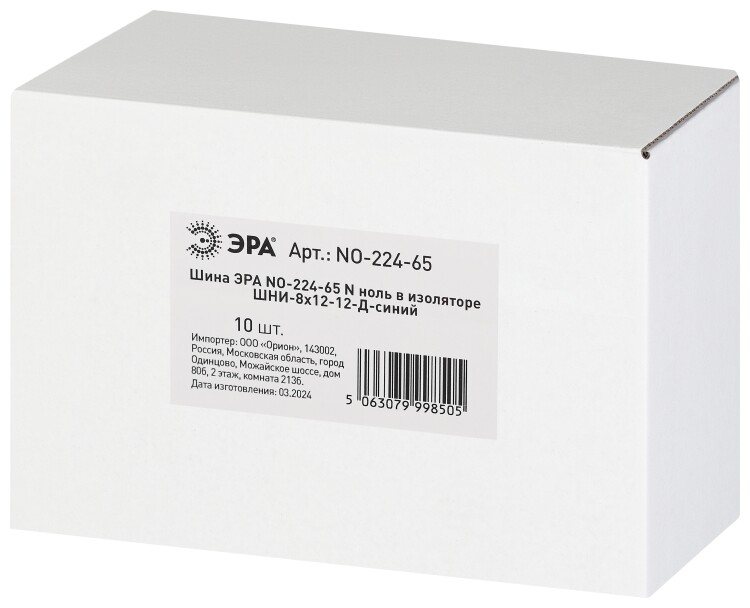 Шина ЭРА NO-224-65 N ноль в изоляторе ШНИ-8х12-12-Д-синий