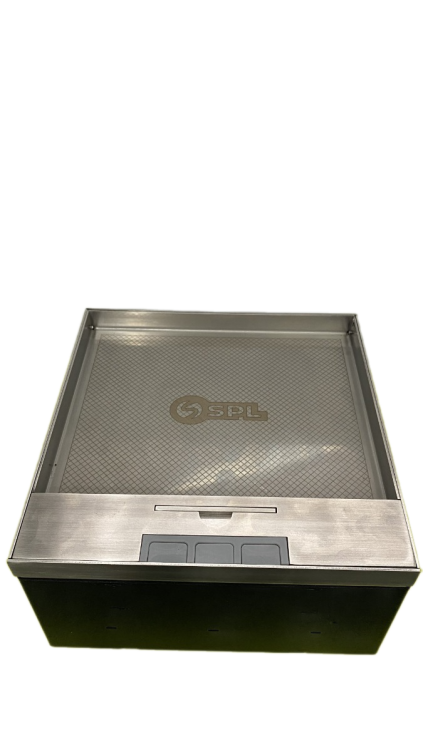 Напольный люк на 4 поста (45х45) горизонтально, с крышкой из нержавеющей стали в уровень пола, с коробкой, IP40