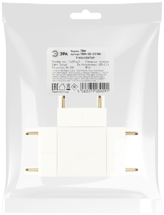 Коннектор ЭРА TRM-S5-CT WH Т-образный для тонкого магнитного шинопровода белый