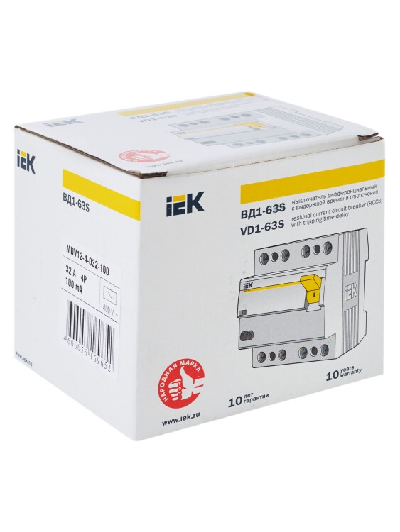 УЗО ВД1-63S 4Р 32А 100мА IEK
