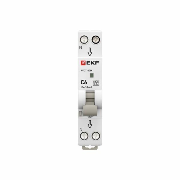 Дифференциальный автомат АВДТ-63М 6А/10мА (1мод, хар. C, электронный, тип A) 6кА EKF PROxima