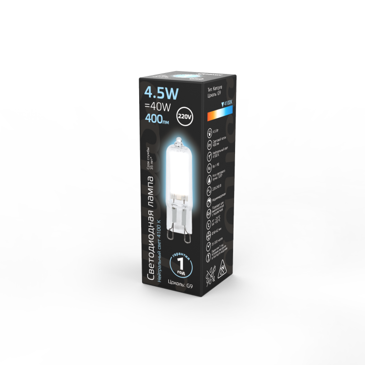 Лампа светодиодная 4,5 Вт 230В G9 стекло 4100K холодный