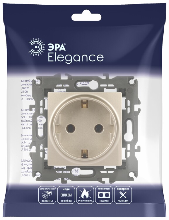 Розетка 2P+E со шторками 16А шампань Elegance 14-2102-04