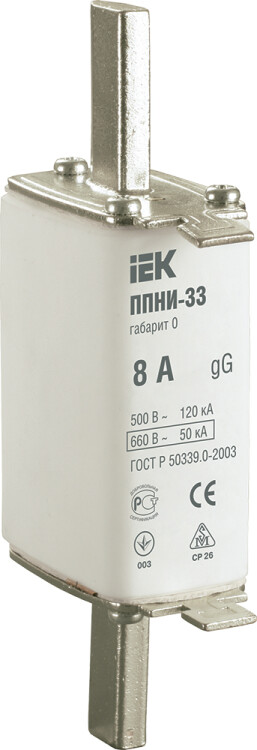 Плавкая вставка предохранителя ППНИ-33, габарит 0, 8А IEK