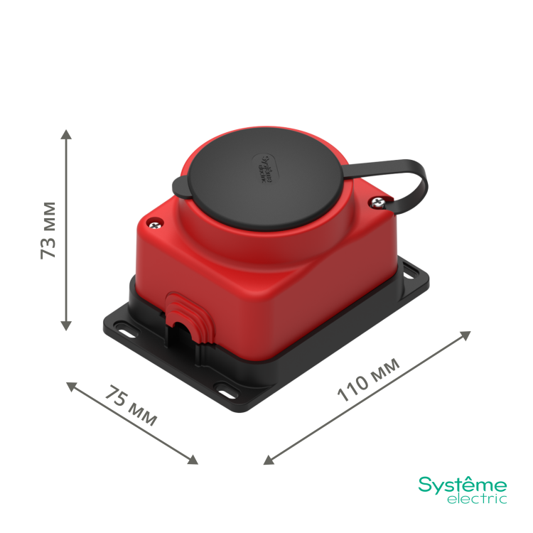 MULTISET Розетка 2К+З открытой установки каучуковая 16 А/250 В IP44 КРАСНАЯ