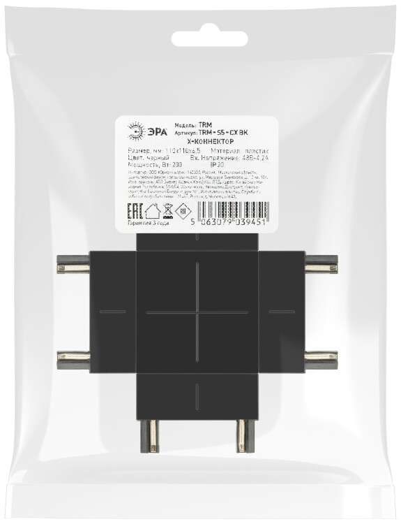 Коннектор ЭРА TRM-S5-CX BK Х-образный для тонкого магнитного шинопровода черный