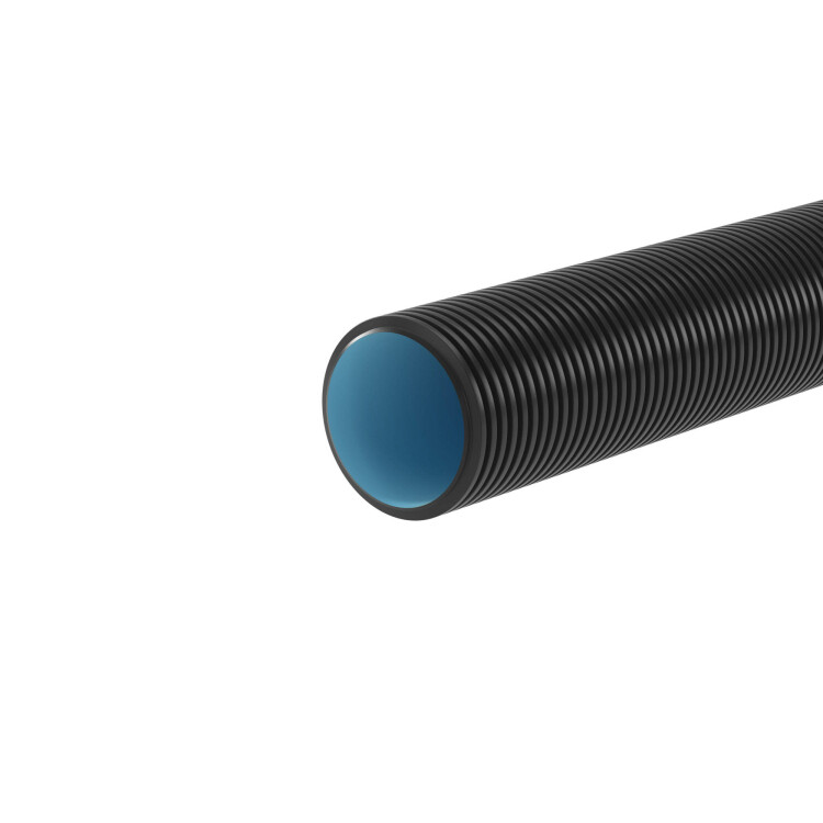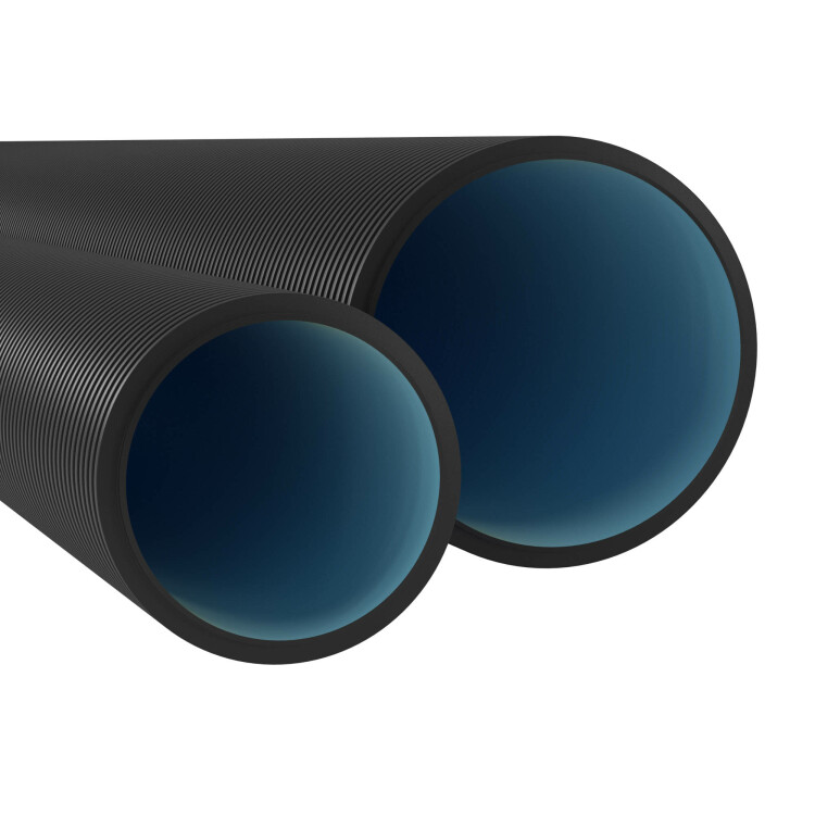 Труба двустенная ПНД жесткая д.125мм для открытой прокладки L= 6м, без протяжки, цвет черный, с муфтой, SN10, не поддерживает горение ПВ-0, УФ